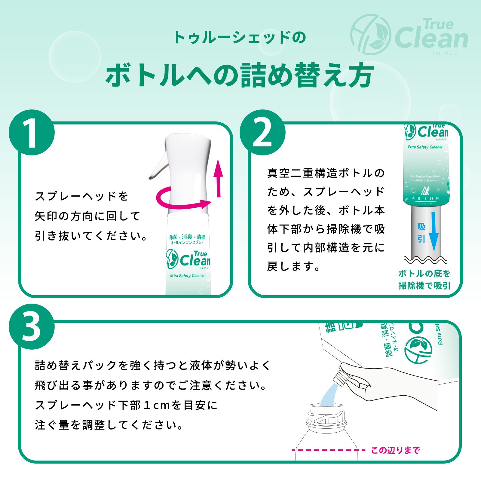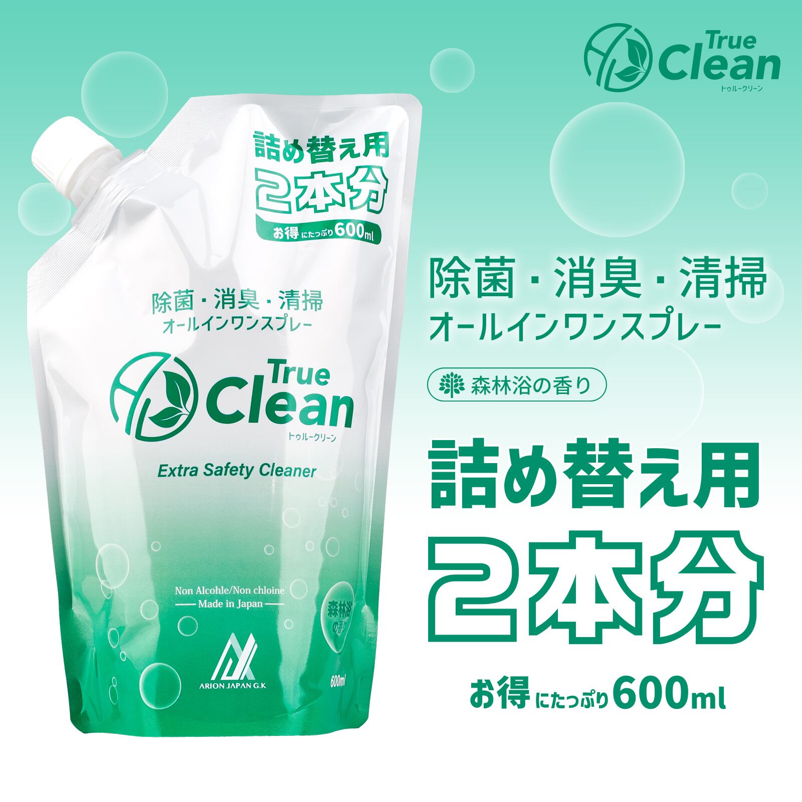 トゥルークリーン、スプレー2本分のお得な詰め替え用です。