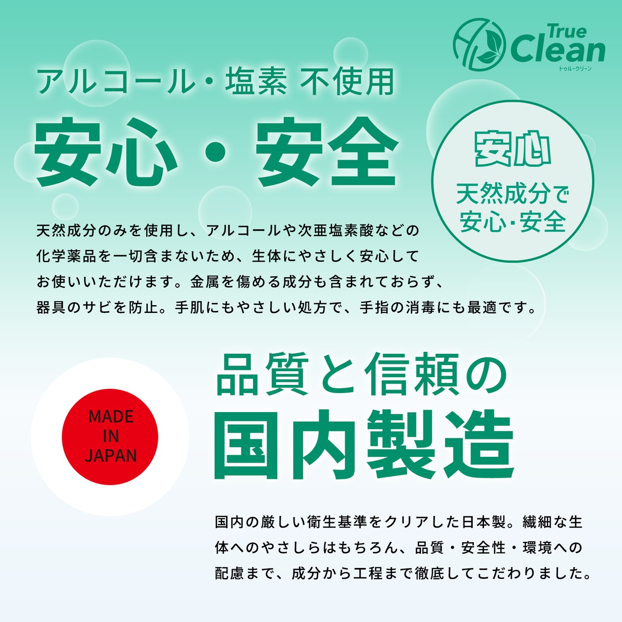 化学薬品を使わず、天然成分を主成分としているため、小さなお子様やペットがいるご家庭でも安心してご使用いただけます。