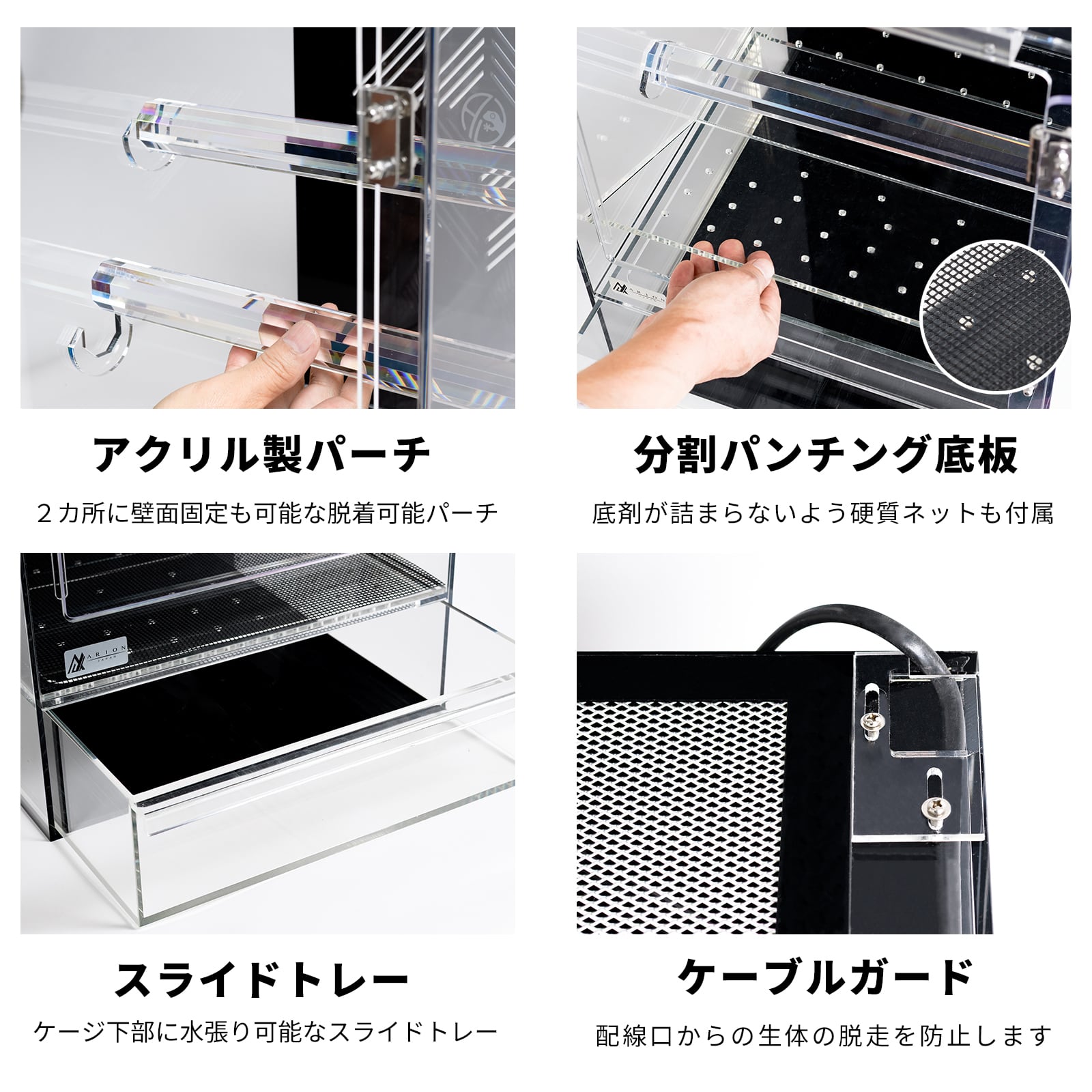 ・下部トレーを引き出す際や戻す際には、ケージ内の生体の巻き込みにご注意ください。