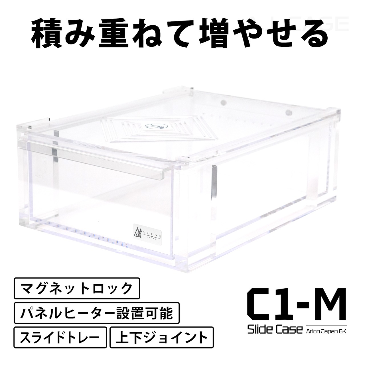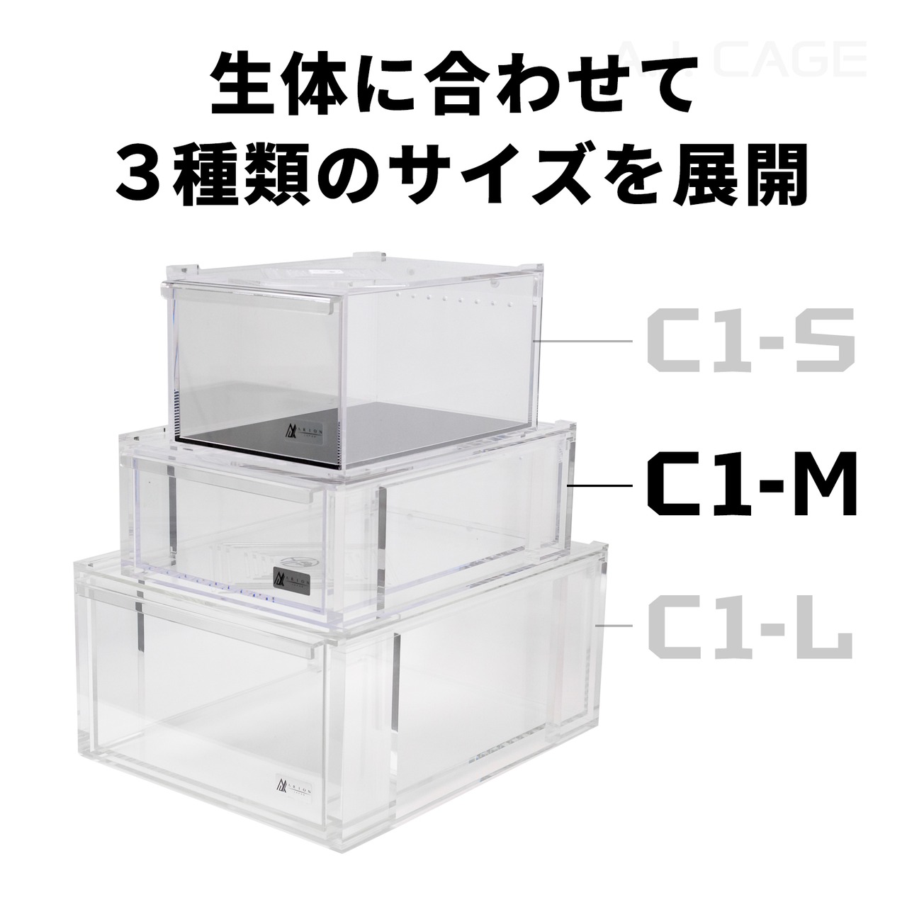 C1シリーズは「美しく生体をコレクションする」「メンテナンス性を高める」ことをコンセプトに開発された、新発想のスライド式アクリルケージ。ケージごと手前に引き出すだけで、給餌・水換え・掃除などの作業がスムーズに行えます。