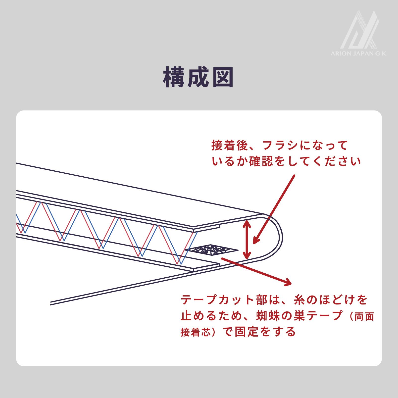 ・接着後、フラシ状態になっているかを確認してください。(確認の際は薄い板状のものを差し込んでください)