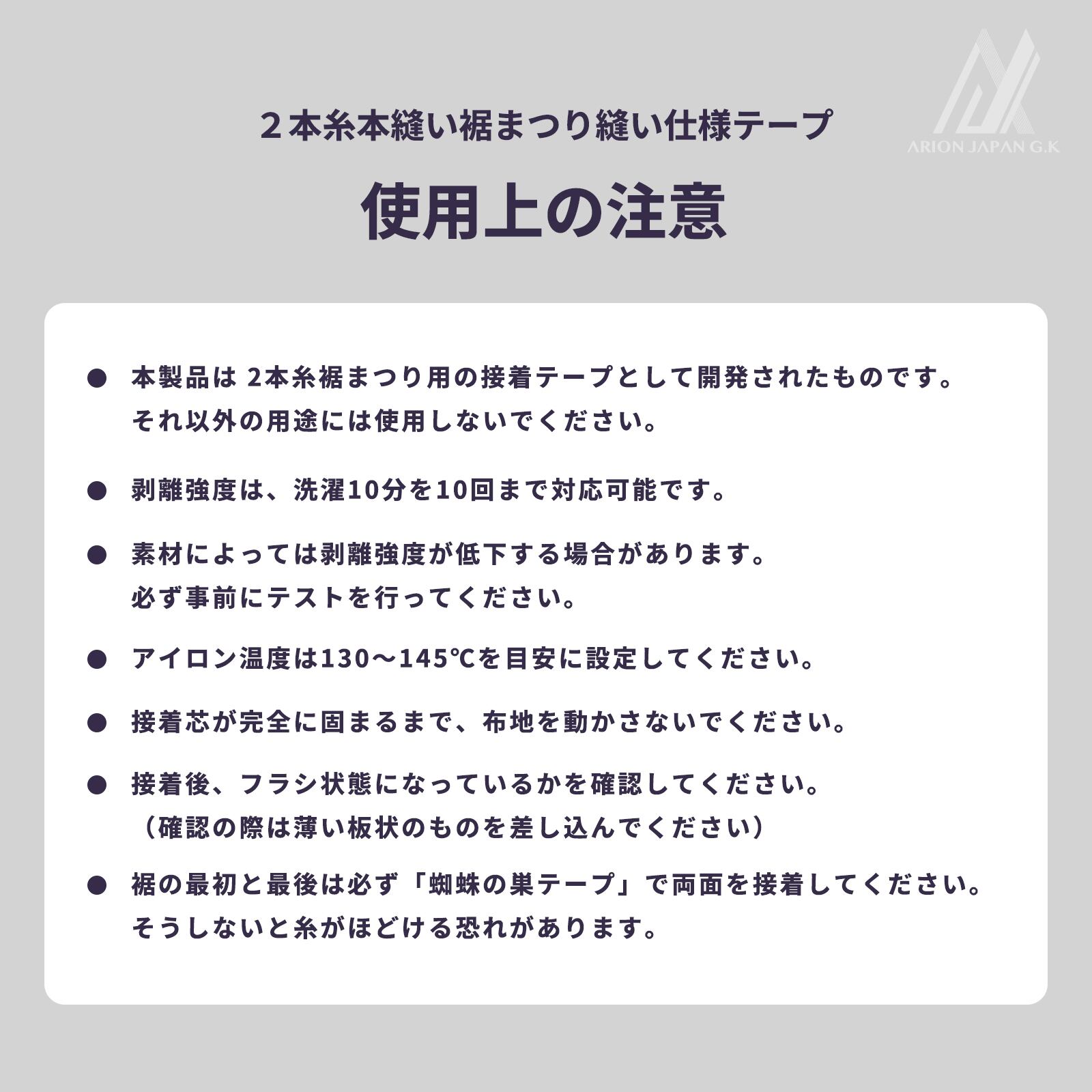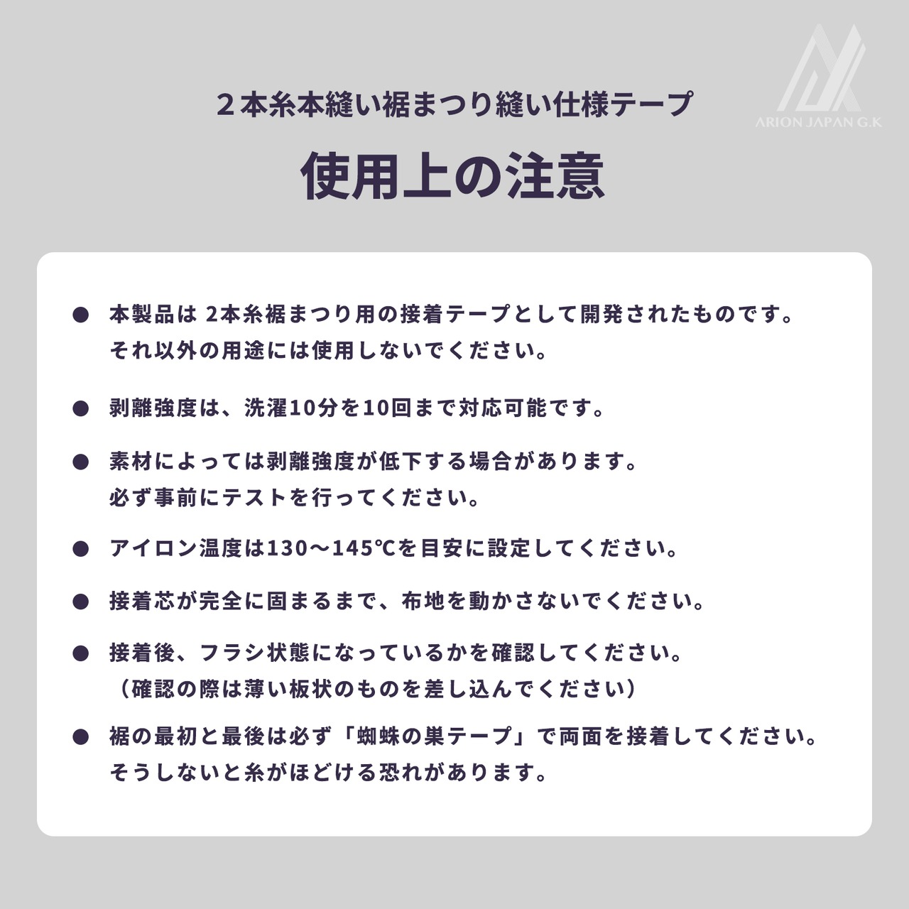 ・本製品は 2本糸裾まつり用の接着テープとして開発されたものです。それ以外の用途には使用しないでください。